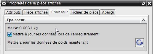 Sinon, je ne me rappelle plus quelle licence tu as, mais si tu as le module Large Assembly, tu peux calculer automatiquement le poids de chaque pièce lors de l’enregistrement (case à cocher sous les propriétés de la part).