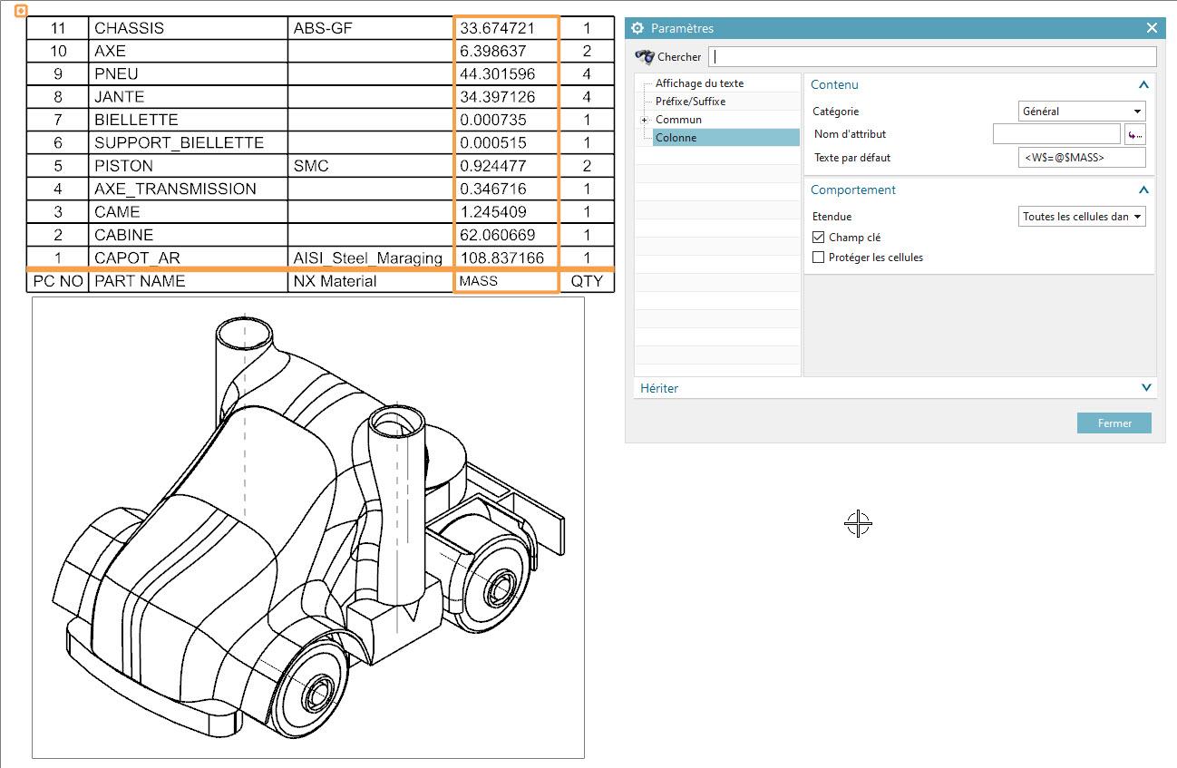 Tu m’avais montré l’astuce suivante (voir image) pour récupérer l’information de la masse dans la mise en plan.